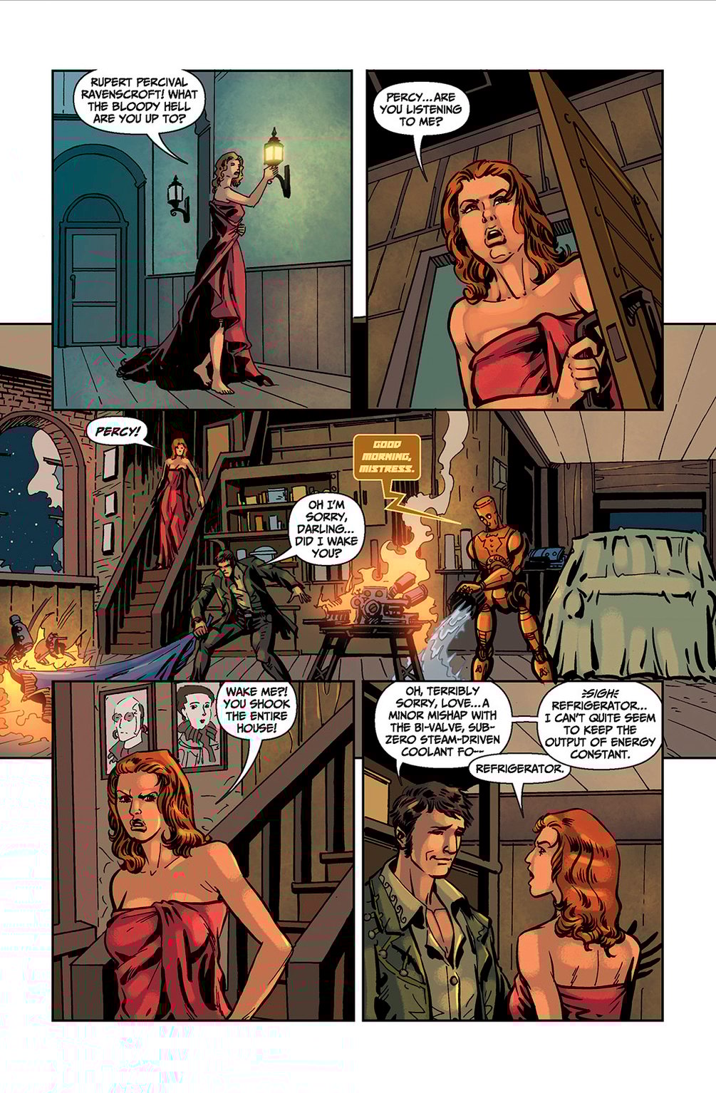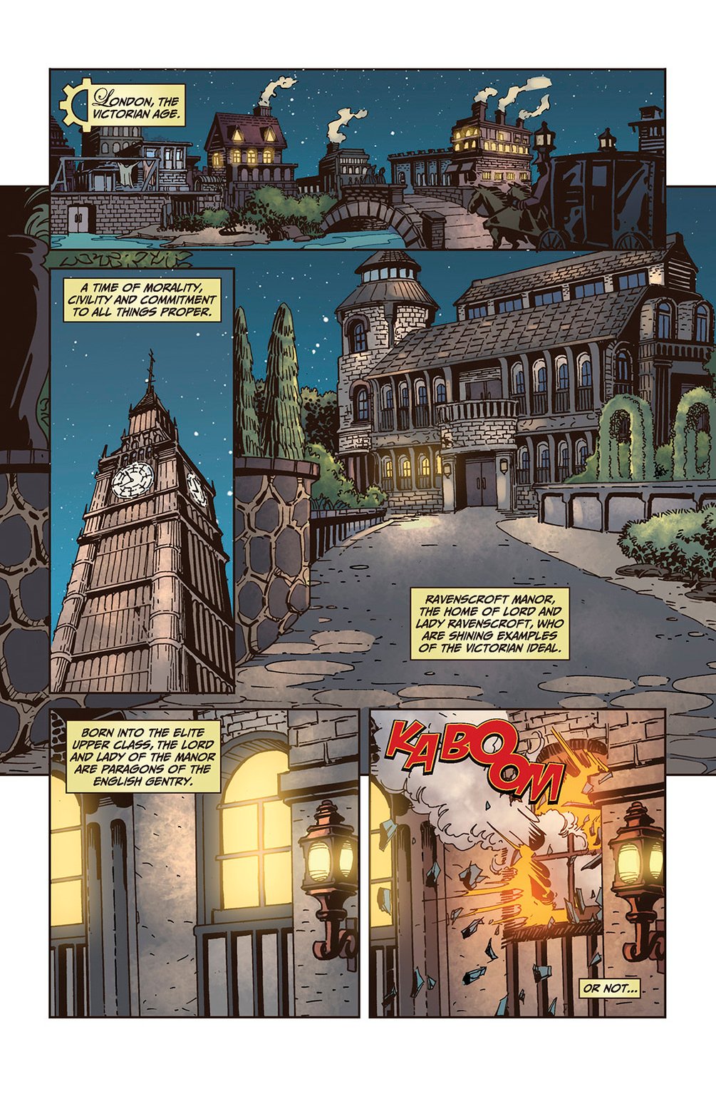 The story follows Lord and Lady Ravenscroft, two brilliant scientists and inventors whose bohemian lifestyle and inventive ways are in direct contrast to the staid and proper ways of Victorian Era London. Served faithfully by their steam driven metallic Major Domo Pneuman, and armed with a variety of elaborate self created inventions, the Ravenscrofts pursue the one vocation that brings excitement into their world…solving murders.